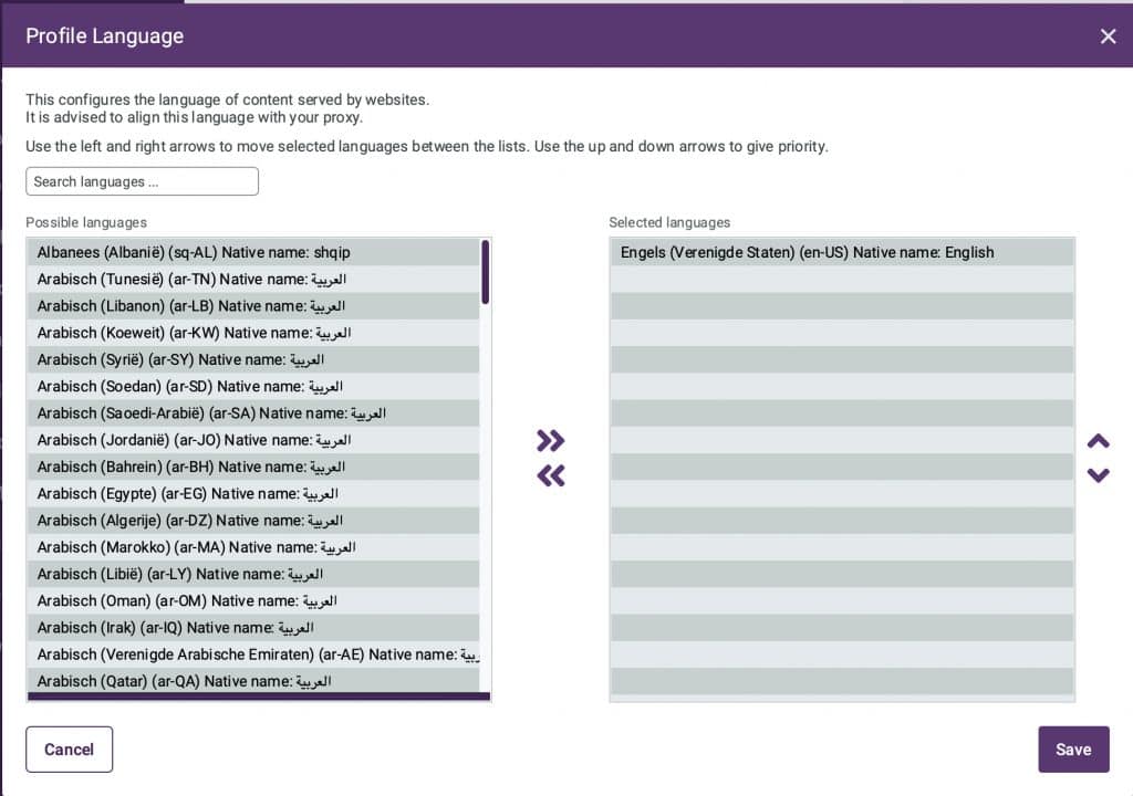 Of course, the preferred language can also be adjusted, but we advise you as a user not to deviate too much from the standard language settings. For a website, this can be a signal that there are inconsistencies in the browser fingerprints.